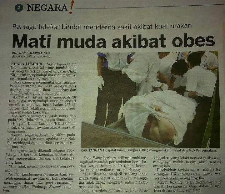 Ramai yang memiliki berat badan berlebihan dan menghidap obesiti, menyangka comel, lucu.. akhirnya mengundang pelbagai penyakit kronik hingga menyebabkan kematian. ORANG MUDA PUN BERISIKO TINGGI JIKA ANDA OBES.